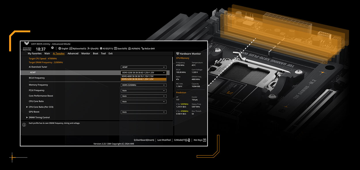 ASUS TUF GAMING A620AM-PLUS WIFI takes all the essential elements of the latest AMD Ryzen™ processors and combines them with game-ready features and proven durability. Engineered with military-grade components, an upgraded power solution and a comprehensive cooling system, this motherboard goes beyond expectations with rock-solid and stable performance for marathon gaming. TUF GAMING motherboards also undergo rigorous endurance testing to ensure that they can handle conditions where others may fail. This platform delivers the power and connectivity that advanced AI PC applications demand.